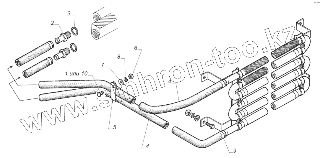 3309-1013001-10. Установка шлангов