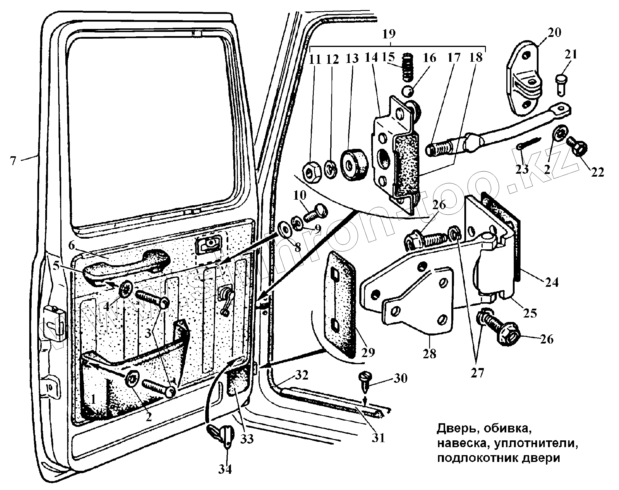 Каталог запасных частей к технике: ГАЗ-3308. Двери, обтвка, навеска, уплотнители, подлокотники