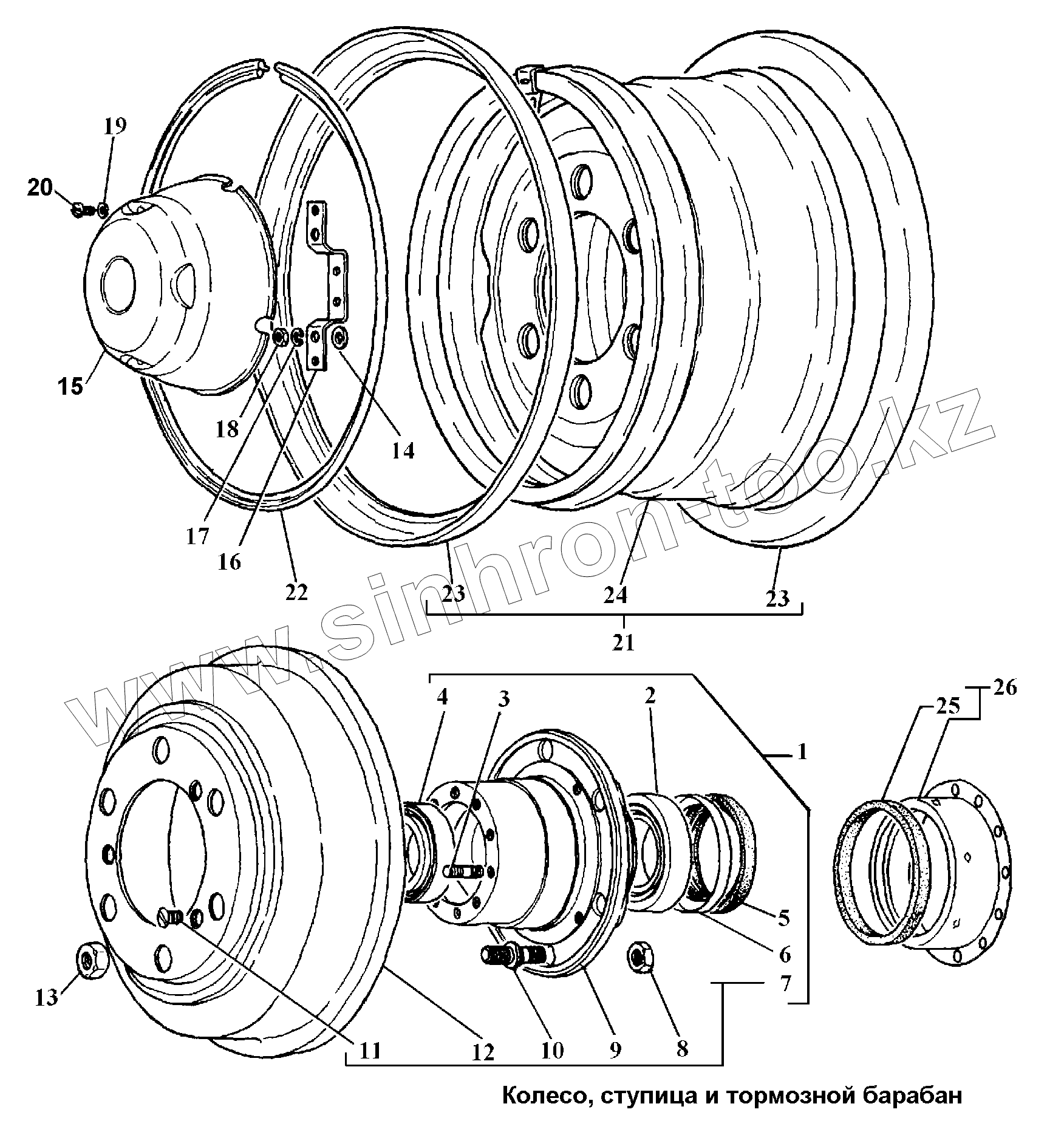 Каталог запасных частей к технике: ГАЗ-3308. Колесо, ступица и тормозной барабан