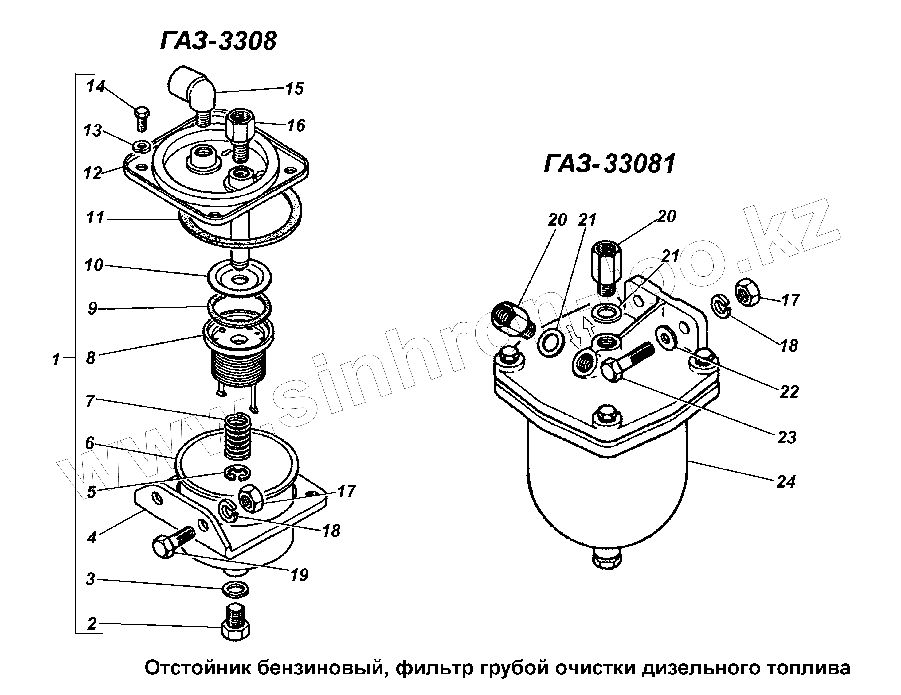 Каталог запасных частей к технике: ГАЗ-3308. Отстойник бензиновый, фильтр грубой очистки дизельного топлива