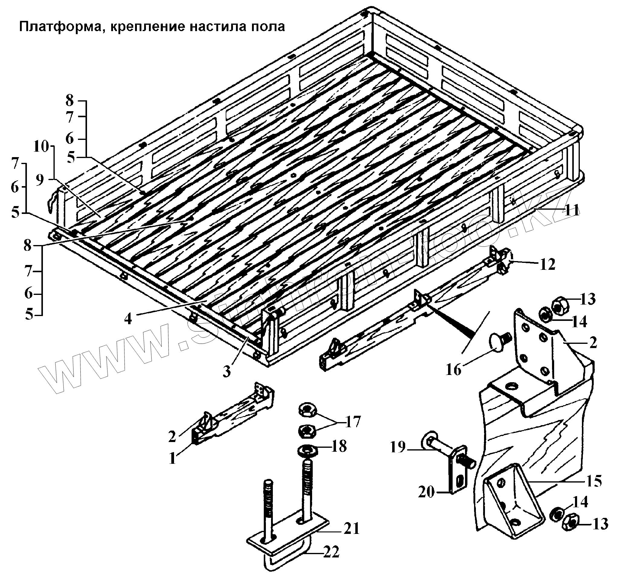 Каталог запасных частей к технике: ГАЗ-3308. Платформа, крепление настила пола