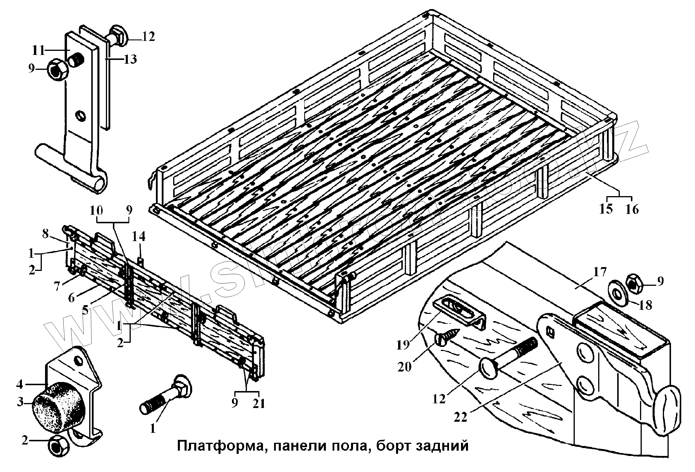 Каталог запасных частей к технике: ГАЗ-3308. Платформа, панели пола, борт задний