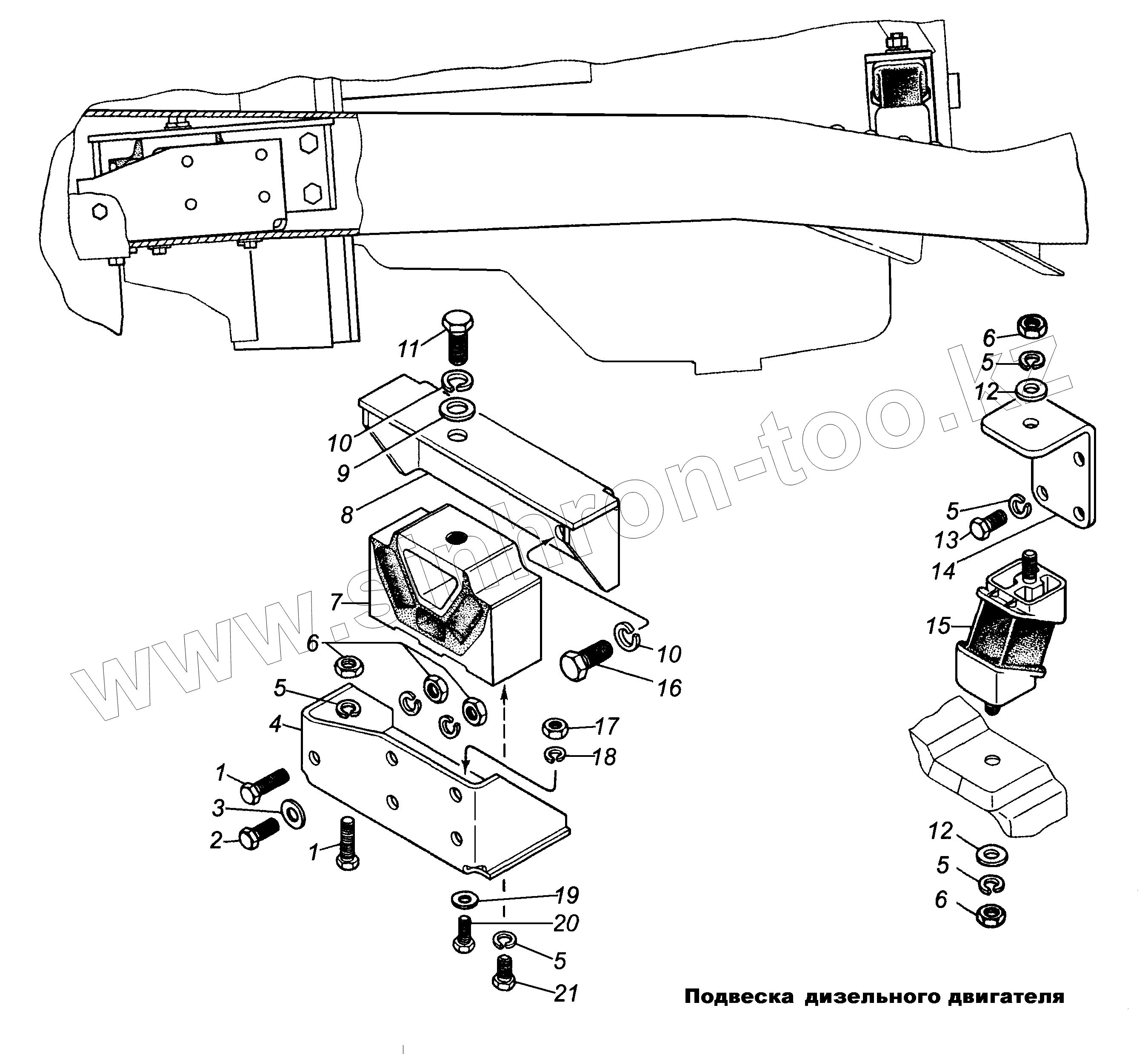 Каталог запасных частей к технике: ГАЗ-3308. Подвеска дизельного двигателя
