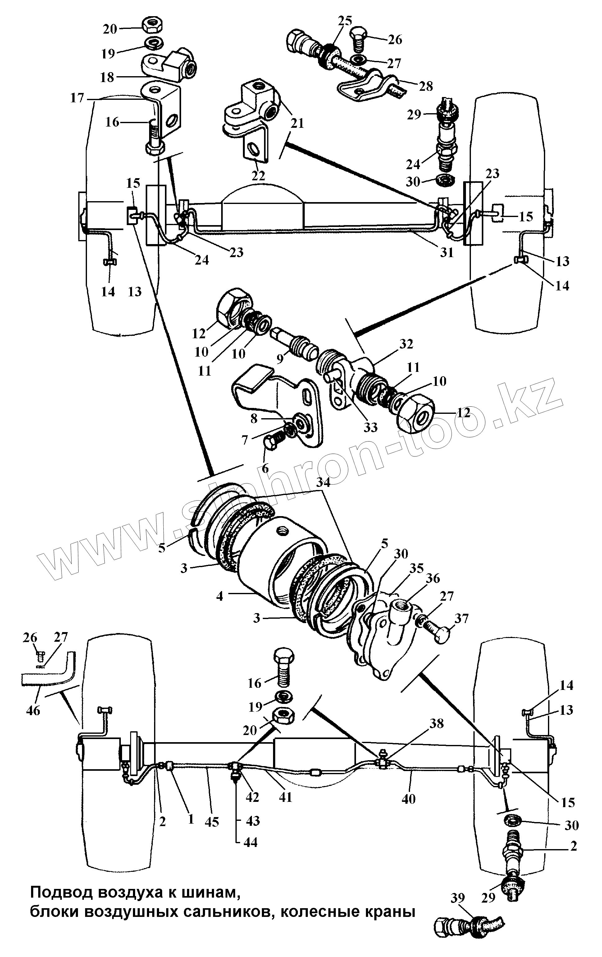 Каталог запасных частей к технике: ГАЗ-3308. Подвод воздуха к шинам