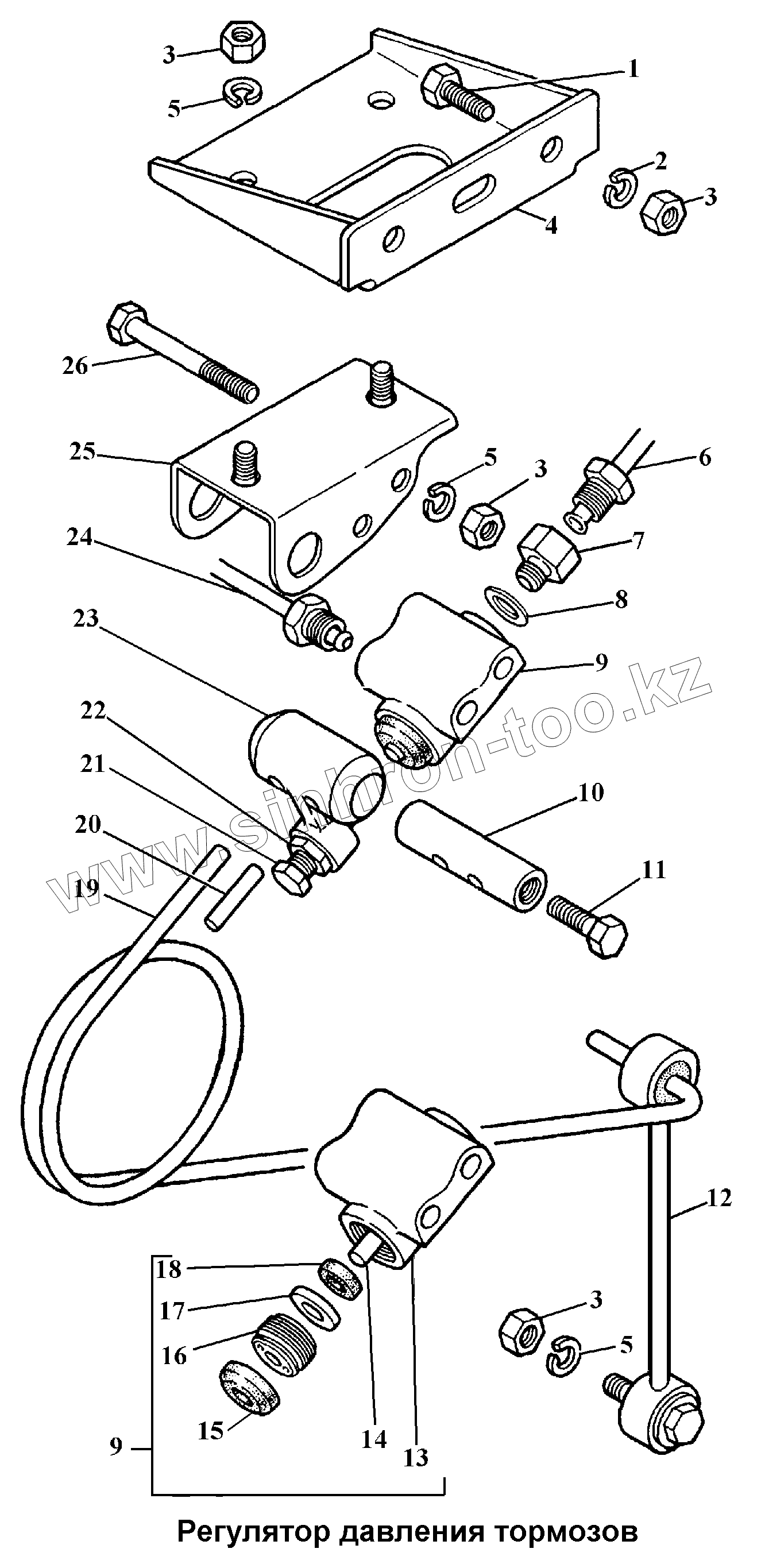 Каталог запасных частей к технике: ГАЗ-3308. Регулятор давления тормозов