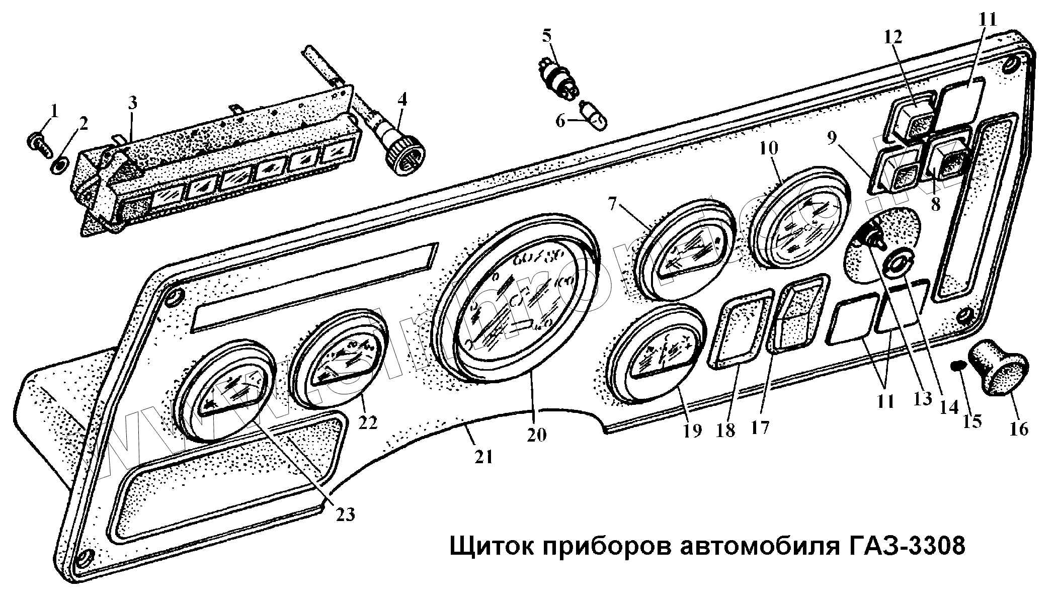 Каталог запасных частей к технике: ГАЗ-3308. Щиток приборов автомобиля ГАЗ-3308