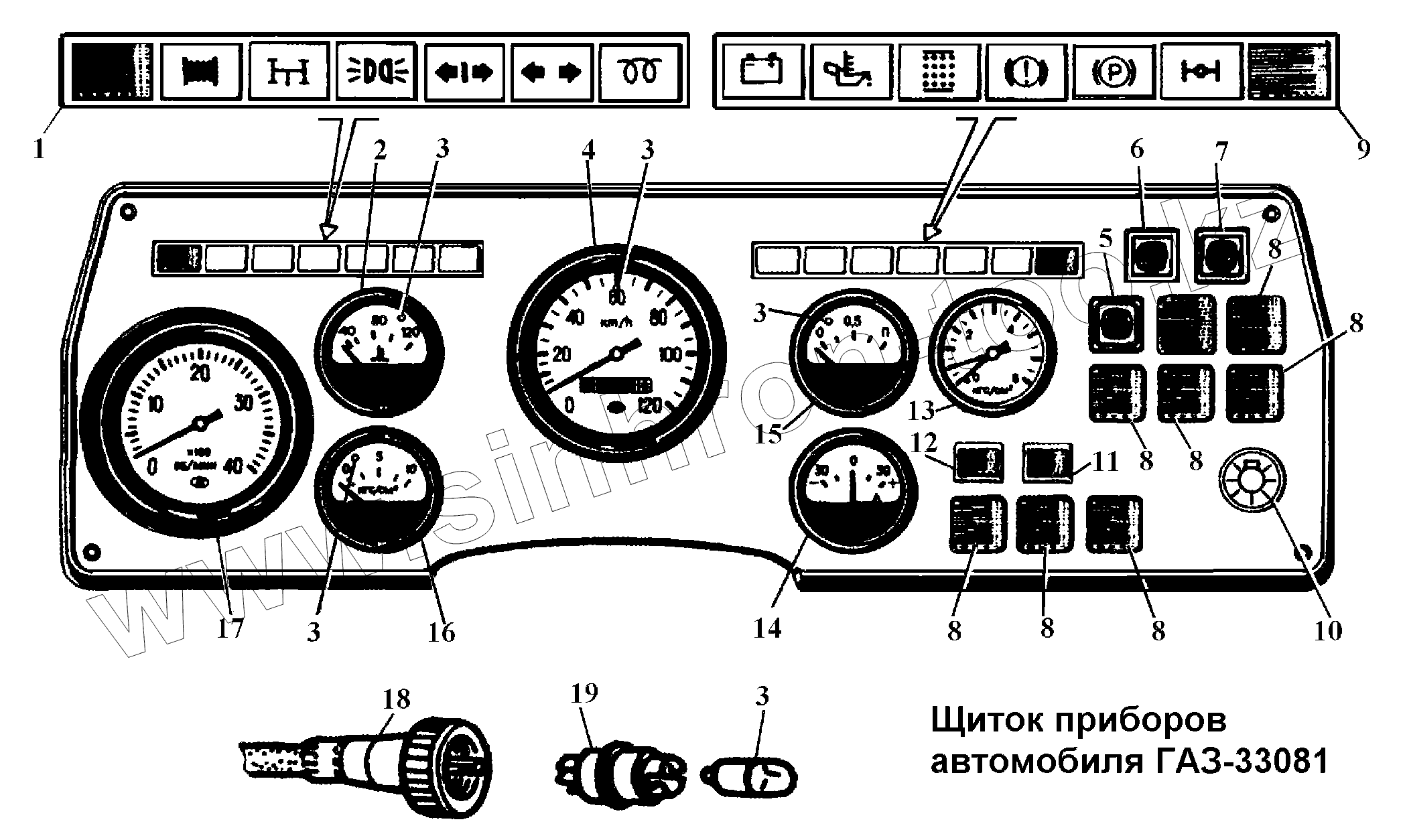 Каталог запасных частей к технике: ГАЗ-3308. Щиток приборов автомобиля ГАЗ-33081