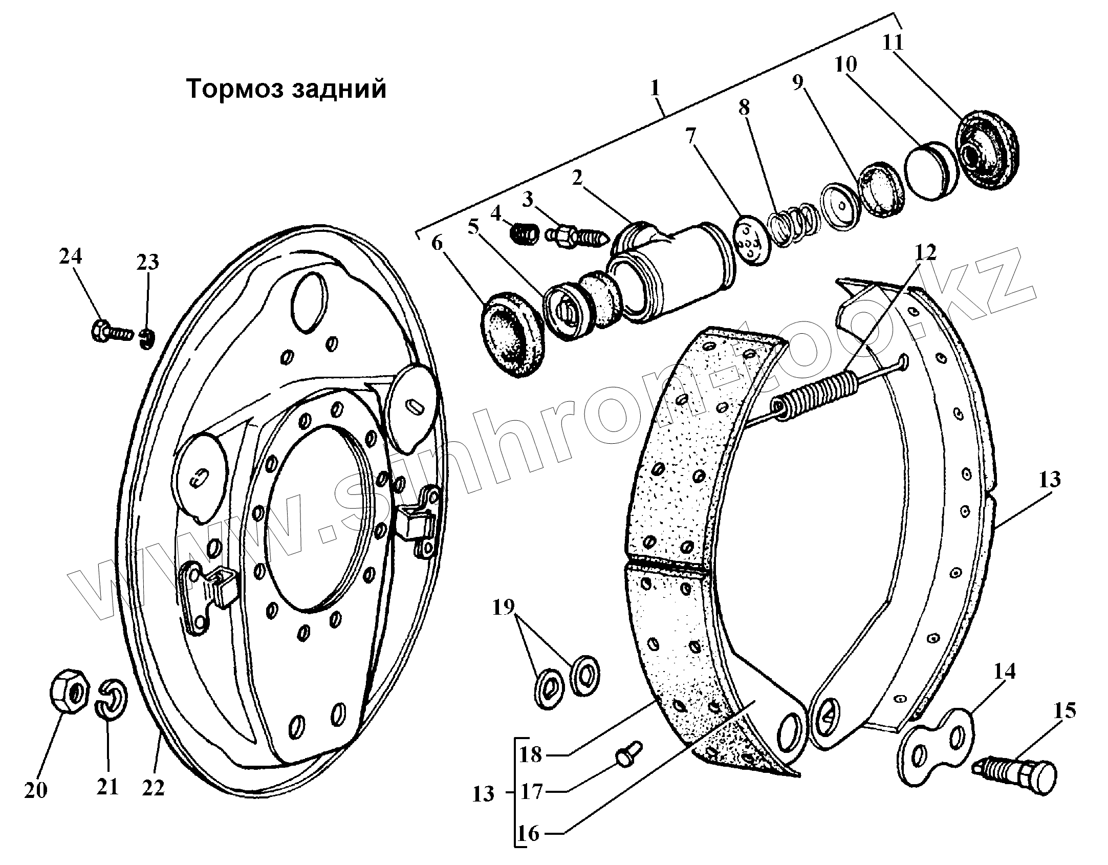 Каталог запасных частей к технике: ГАЗ-3308. Тормоз задний