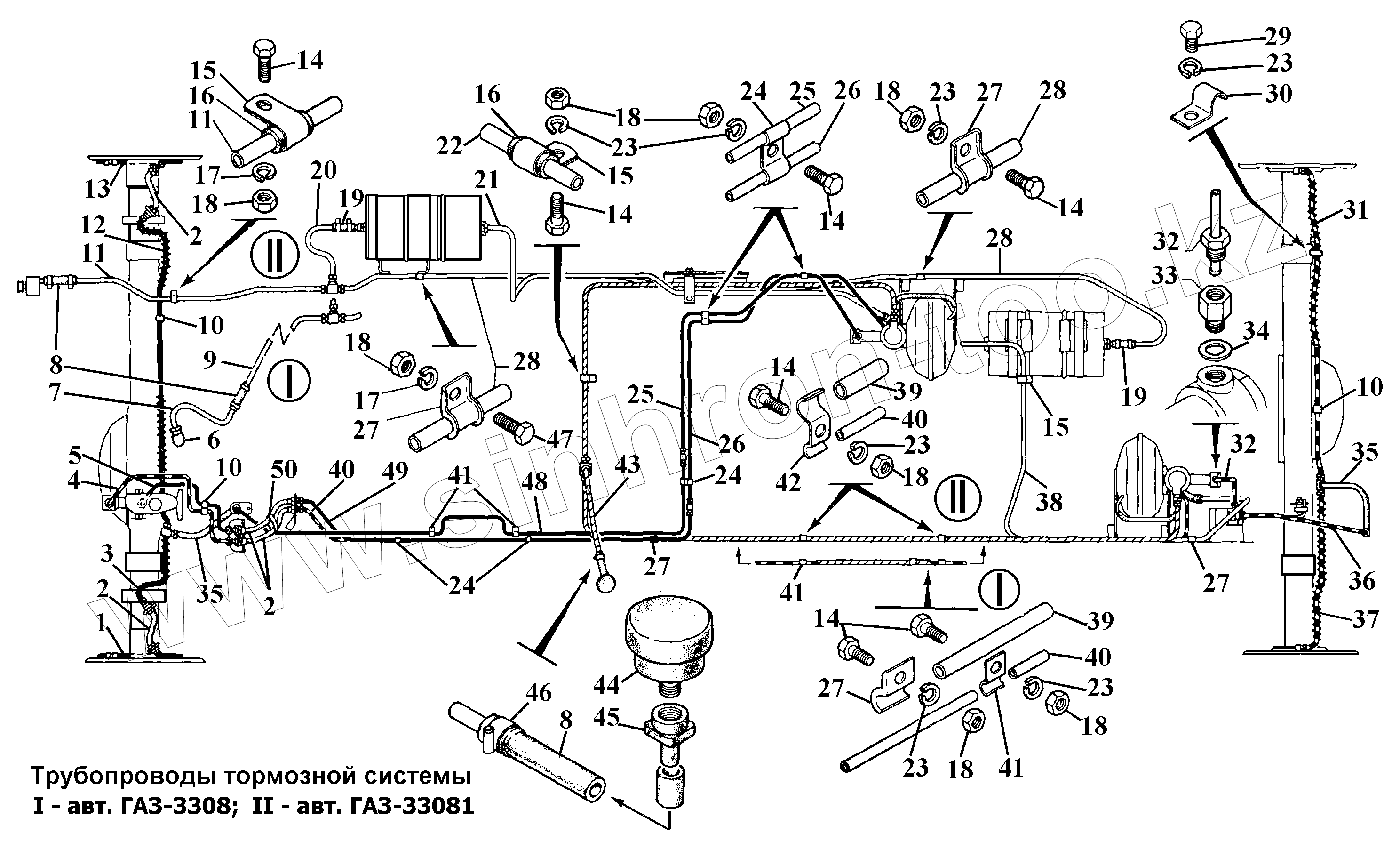 Каталог запасных частей к технике: ГАЗ-3308. Трубопроводы тормозной системы