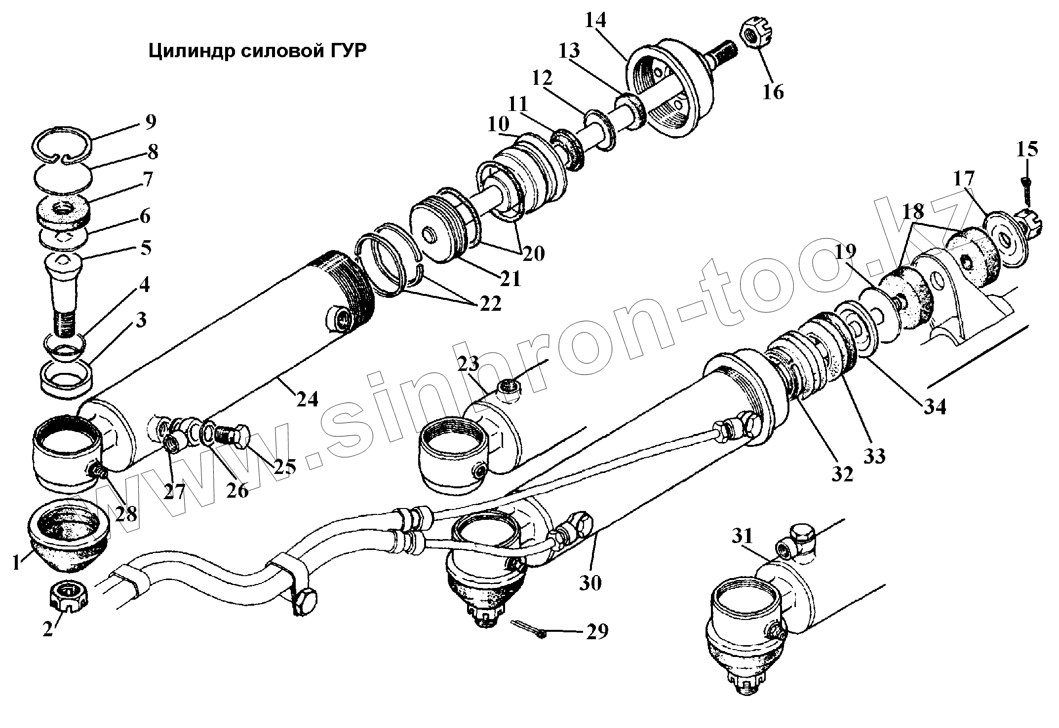 Каталог запасных частей к технике: ГАЗ-3308. Цилиндр силовой ГУР