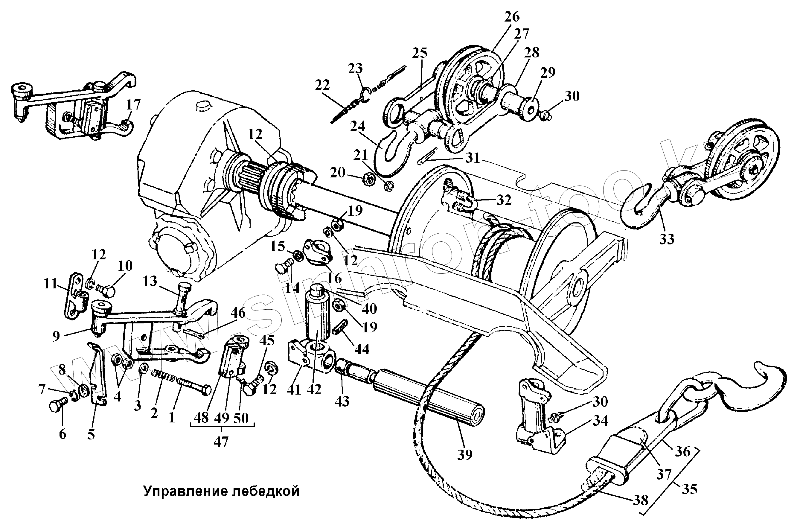 Каталог запасных частей к технике: ГАЗ-3308. Управление лебедкой