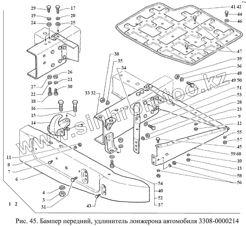 Каталог запасных частей к технике: ГАЗ-3308. Бампер передний, удлинитель лонжерона автомобиля 3308-0000214