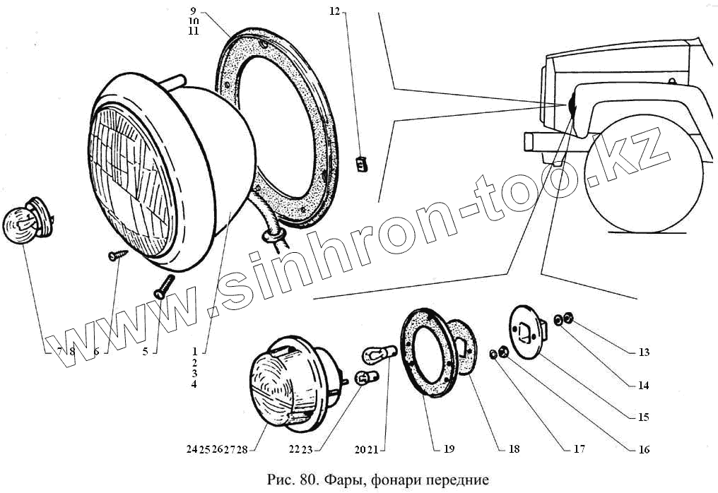 Каталог запасных частей к технике: ГАЗ-3308. Фары, фонари передние