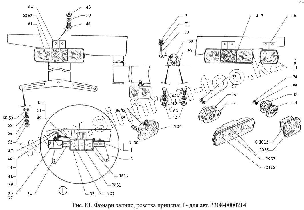 Каталог запасных частей к технике: ГАЗ-3308. Фонари задние, розетка прицепа