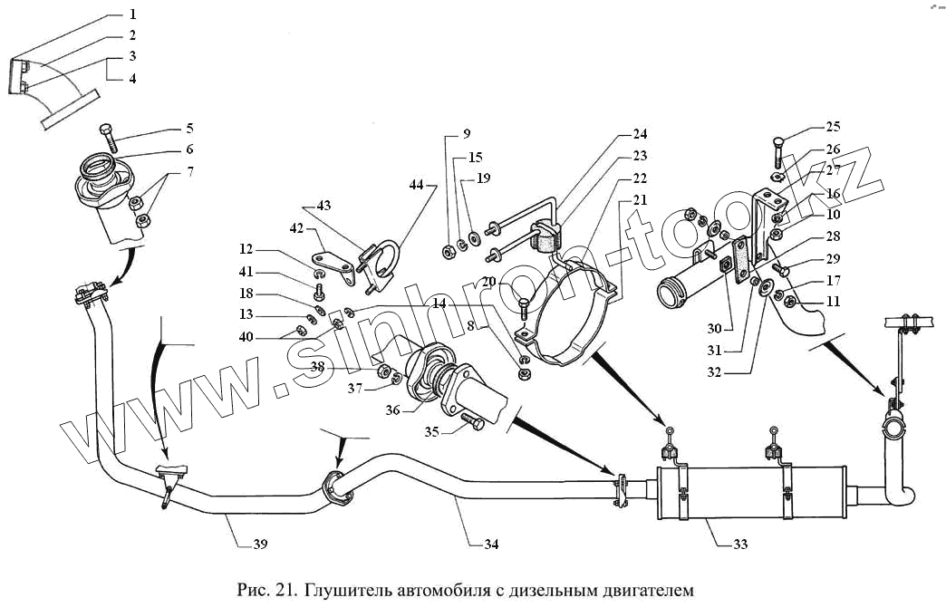 Каталог запасных частей к технике: ГАЗ-3308. Глушитель автомобиля с дизельным двигателем