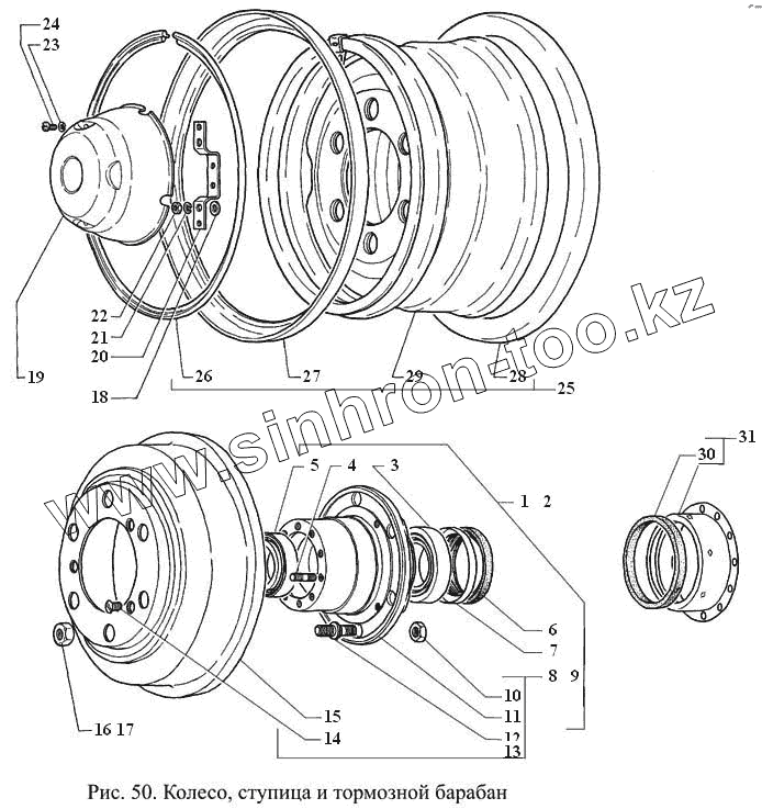 Каталог запасных частей к технике: ГАЗ-3308. Колесо, ступица и тормозной барабан