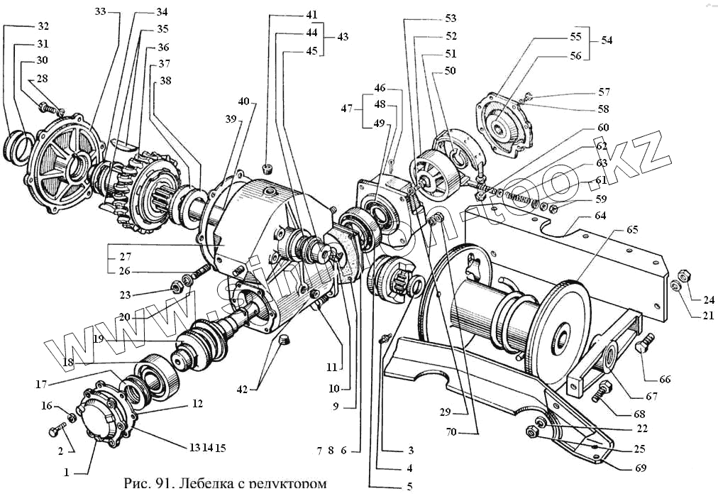 Каталог запасных частей к технике: ГАЗ-3308. Лебедка с редуктором