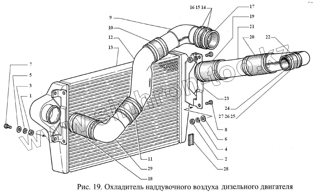 Каталог запасных частей к технике: ГАЗ-3308. Охладитель наддувочного воздуха дизельного двигателя