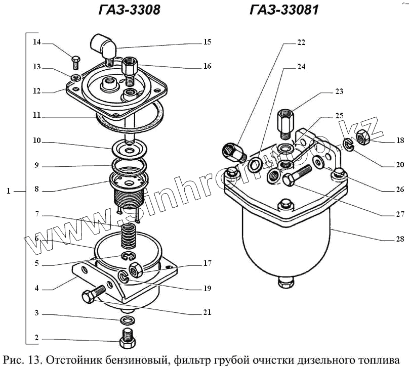 Каталог запасных частей к технике: ГАЗ-3308. Отстойник бензиновый, фильтр грубой очистки дизельного топлива