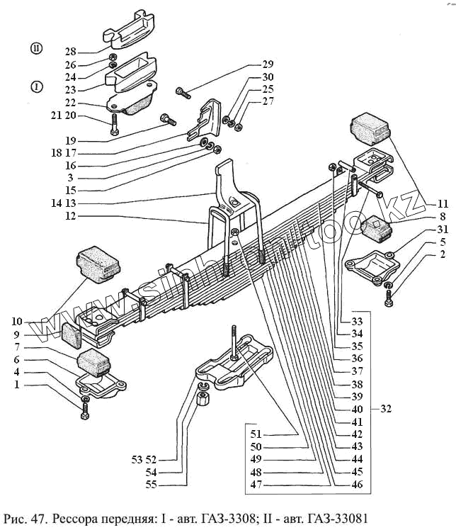Каталог запасных частей к технике: ГАЗ-3308. Рессора передняя