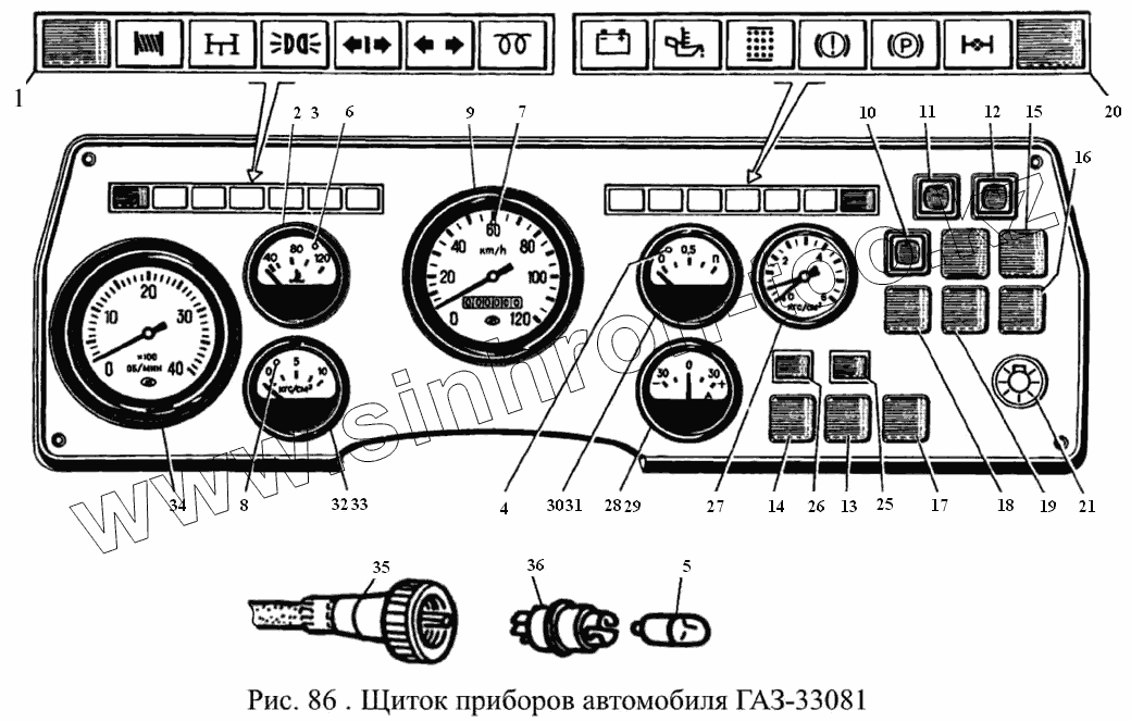 Каталог запасных частей к технике: ГАЗ-3308. Щиток приборов автомобиля ГАЗ-33081