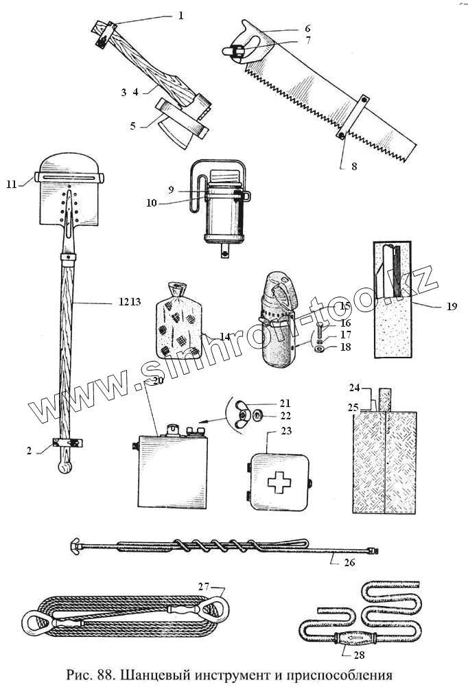 Каталог запасных частей к технике: ГАЗ-3308. Шанцевый инструмент и приспособления