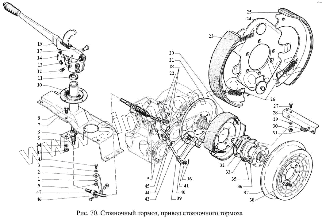 Каталог запасных частей к технике: ГАЗ-3308. Стояночный тормоз, привод стояночного тормоза