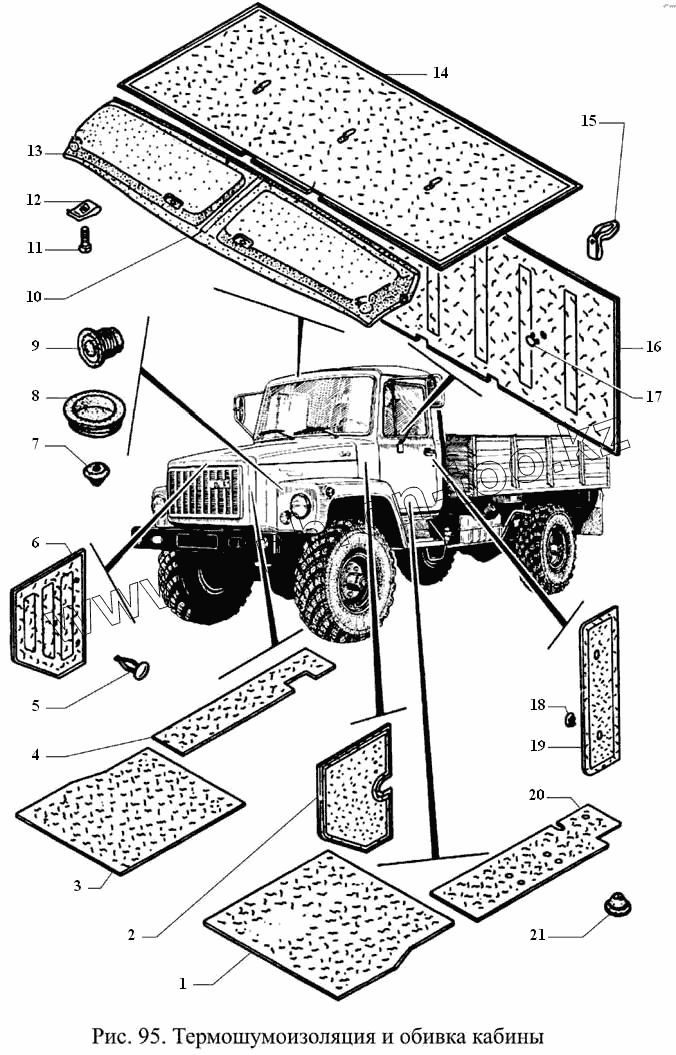 Каталог запасных частей к технике: ГАЗ-3308. Термошумоизоляция и обивка кабины