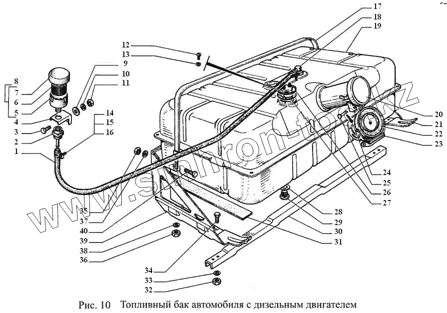 Каталог запасных частей к технике: ГАЗ-3308. Топливный бак автомобиля с дизельным двигателем