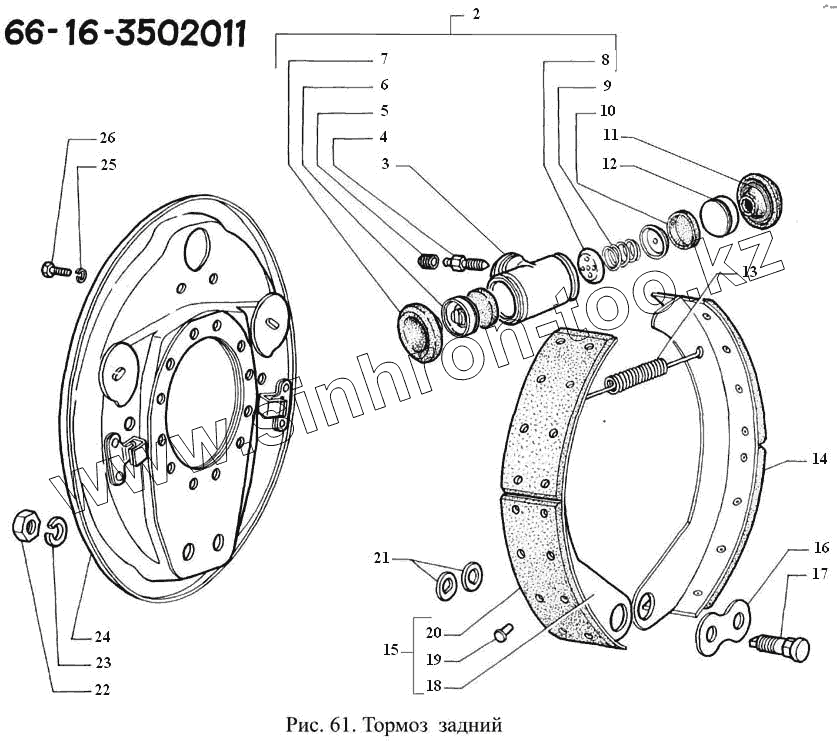 Каталог запасных частей к технике: ГАЗ-3308. Тормоз задний