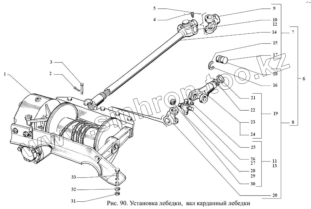 Каталог запасных частей к технике: ГАЗ-3308. Установка лебедки, вал карданный лебедки