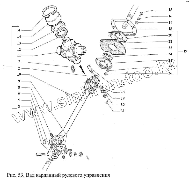 Каталог запасных частей к технике: ГАЗ-3308. Вал карданный рулевого управления