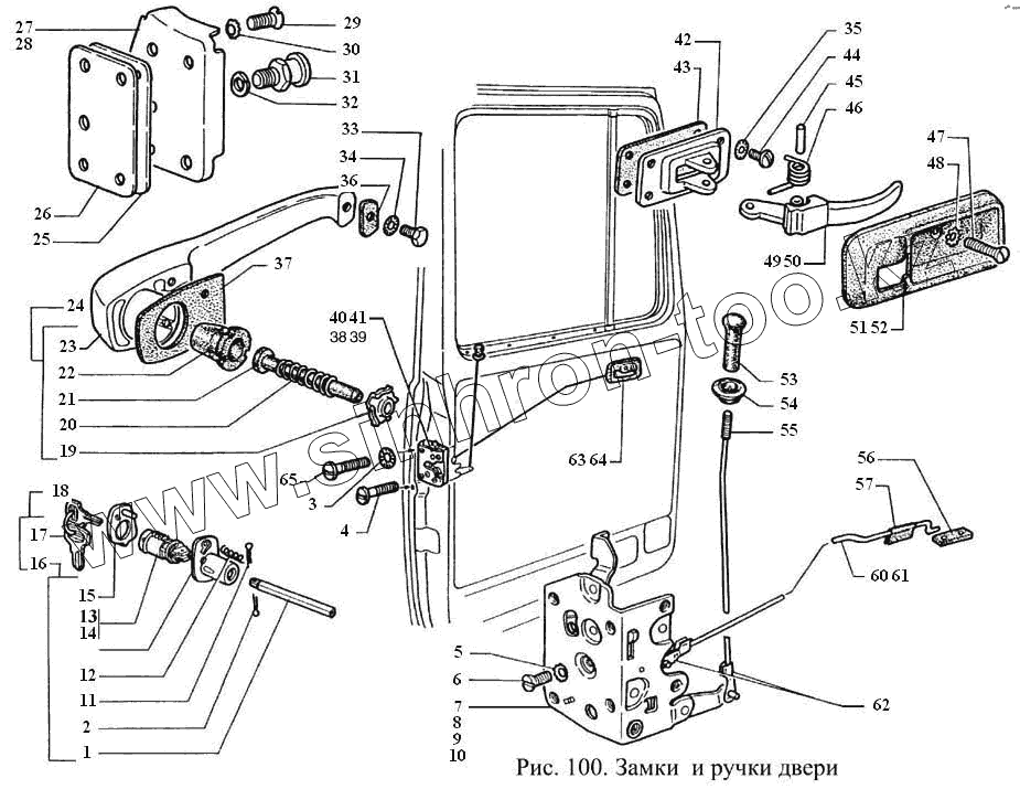 Каталог запасных частей к технике: ГАЗ-3308. Замки и ручки дверей