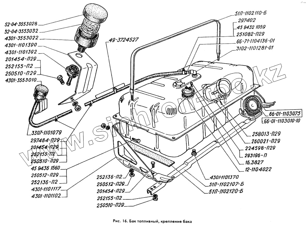Каталог запасных частей к технике: ГАЗ-3309. Бак топливный, крепление бака