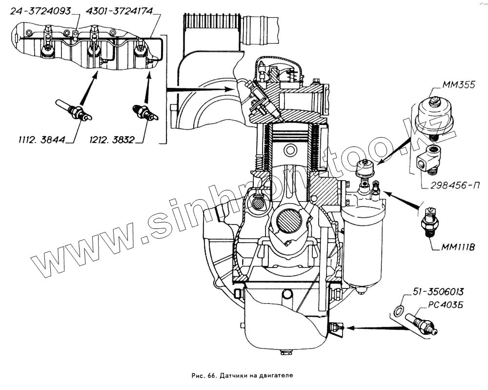 Каталог запасных частей к технике: ГАЗ-3309. Датчики на двигателе