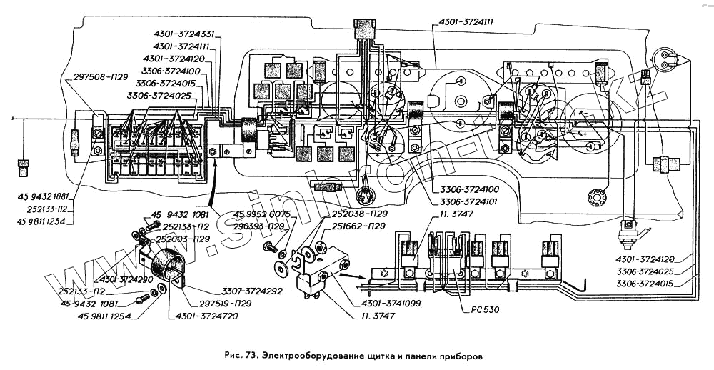 Каталог запасных частей к технике: ГАЗ-3309. Электрооборудование щитка и панели приборов