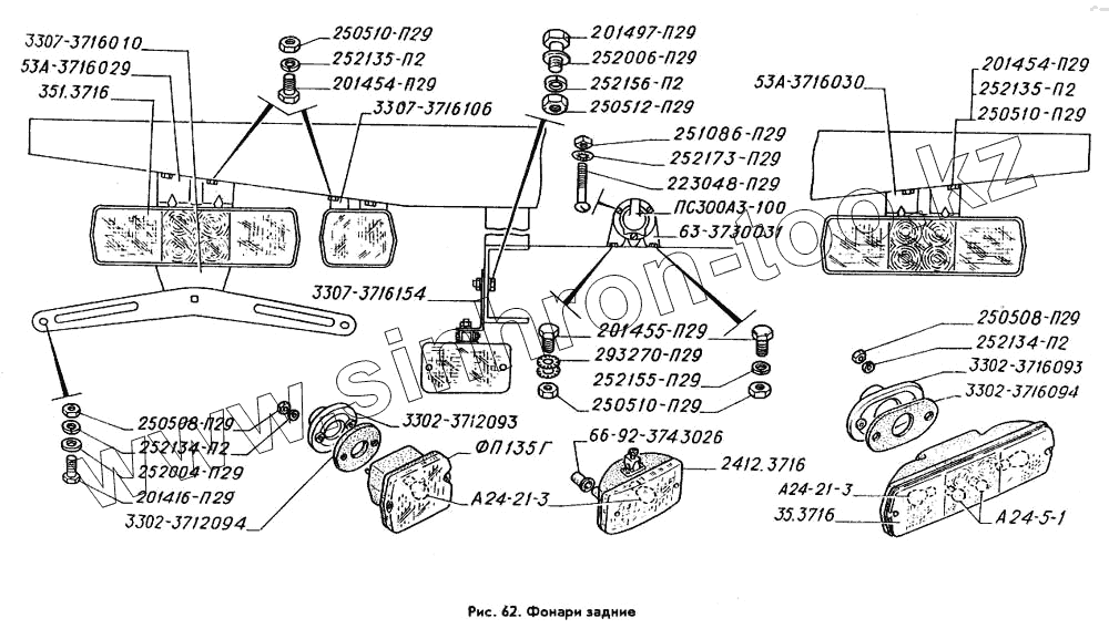 Каталог запасных частей к технике: ГАЗ-3309. Фонари задние