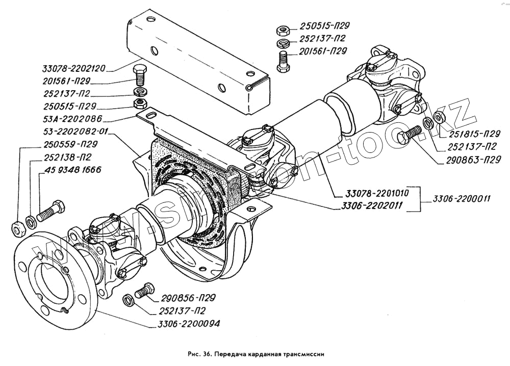 Каталог запасных частей к технике: ГАЗ-3309. Передача карданная трансмиссии