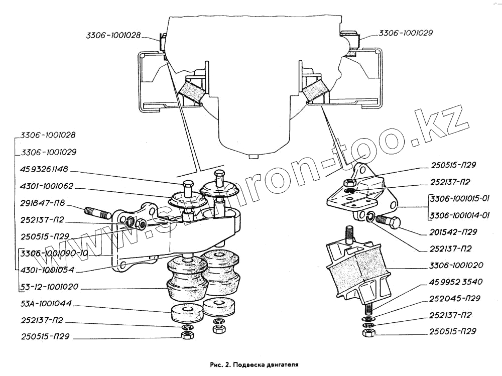 Каталог запасных частей к технике: ГАЗ-3309. Подвеска двигателя