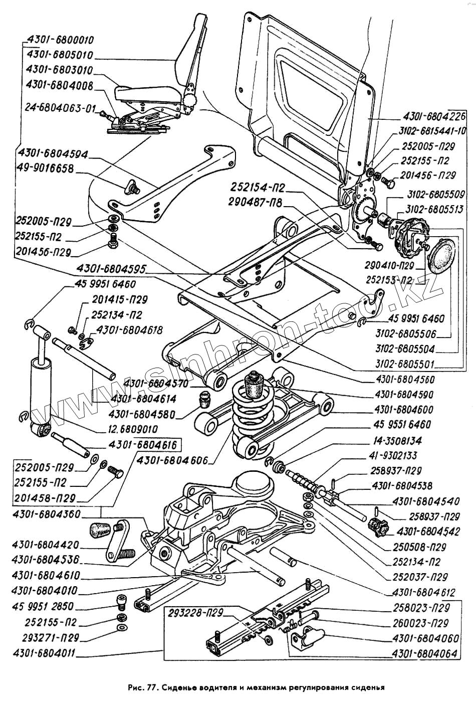 Каталог запасных частей к технике: ГАЗ-3309. Сиденье водителя и механизм регулирования сиденья