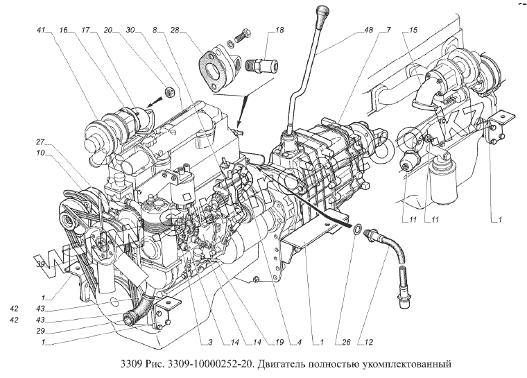 Каталог запасных частей к технике: ГАЗ-3309 (Евро 2). Двигатель полностью укомплектованный
