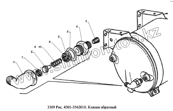 Каталог запасных частей к технике: ГАЗ-3309 (Евро 2). Клапан обратный