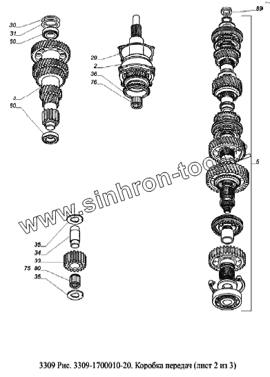 Каталог запасных частей к технике: ГАЗ-3309 (Евро 2). Коробка передач