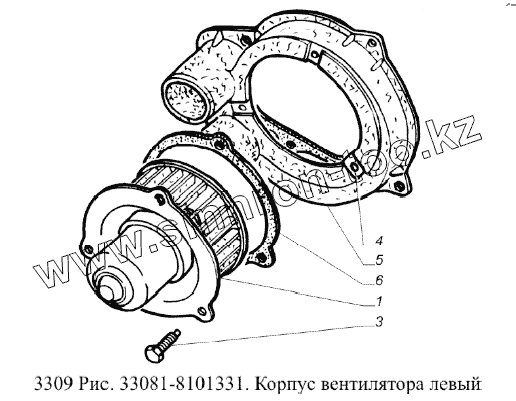Каталог запасных частей к технике: ГАЗ-3309 (Евро 2). Корпус вентилятора левый