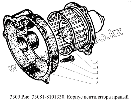 Каталог запасных частей к технике: ГАЗ-3309 (Евро 2). Корпус вентилятора правый
