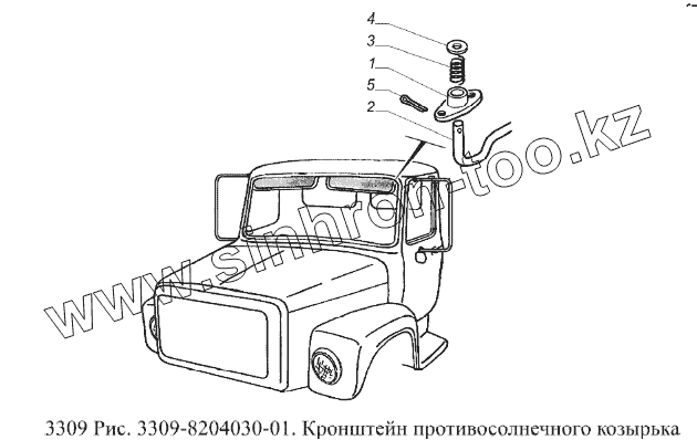 Каталог запасных частей к технике: ГАЗ-3309 (Евро 2). Кронштейн противосолнечного козырька