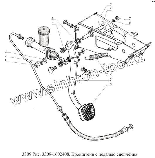 Каталог запасных частей к технике: ГАЗ-3309 (Евро 2). Кронштейн с педалью сцепления