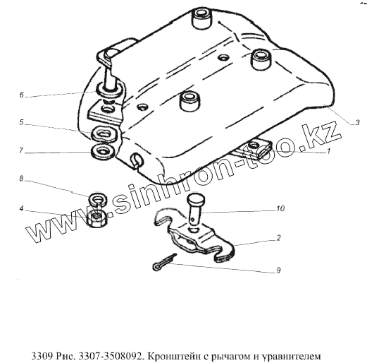 Каталог запасных частей к технике: ГАЗ-3309 (Евро 2). Кронштейн с рычагом и уравнителем