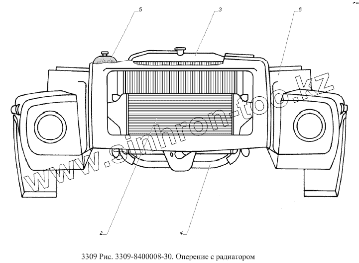 Каталог запасных частей к технике: ГАЗ-3309 (Евро 2). Оперение с радиатором