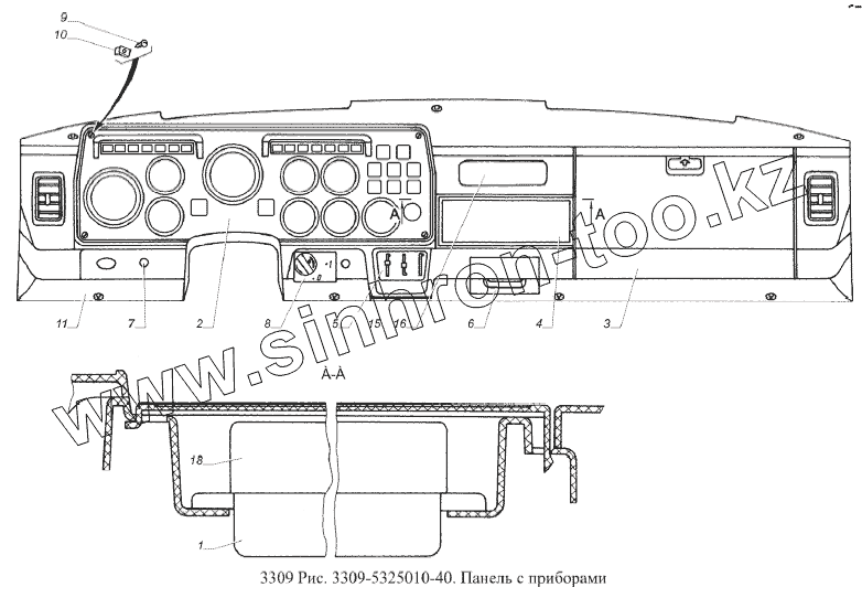 Каталог запасных частей к технике: ГАЗ-3309 (Евро 2). Панель с приборами